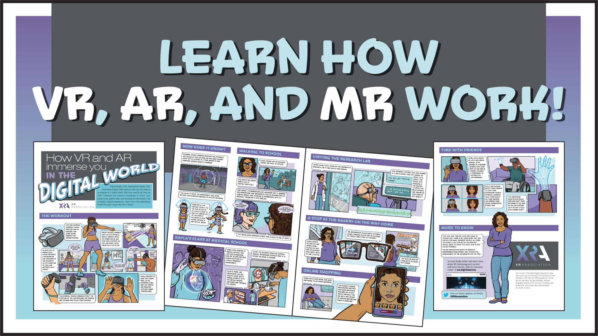 In the first edition, through a series of vignettes, Kayla uses XR technology to enhance her educational experience as well as her daily routines. In the second edition, Kayla and XR users of different ages explore the various ways to use immersive technology safely and responsibly, touching on important user trust, safety, and privacy settings.