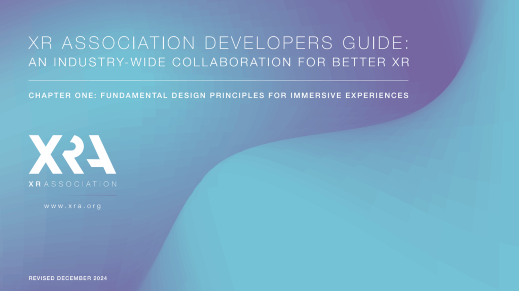 Washington, D.C. – Today, the XR Association (XRA), the trade association representing the growing ecosystem of companies powering virtual, augmented, and mixed reality (XR), released the revised edition of Chapter 1 of its Developers Guide, Fundamental Design Principles for Immersive Experiences. This updated guide reflects the evolution of XR technologies over the past five years […]