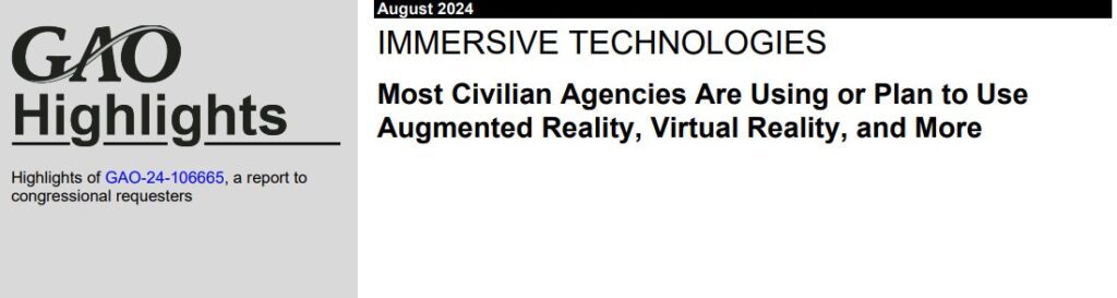 GAO REPORTS POSITIVE OUTCOMES OF USING IMMERSIVE TECHNOLOGY ACROSS A VARIETY OF FEDERAL CIVILIAN AGENCIES