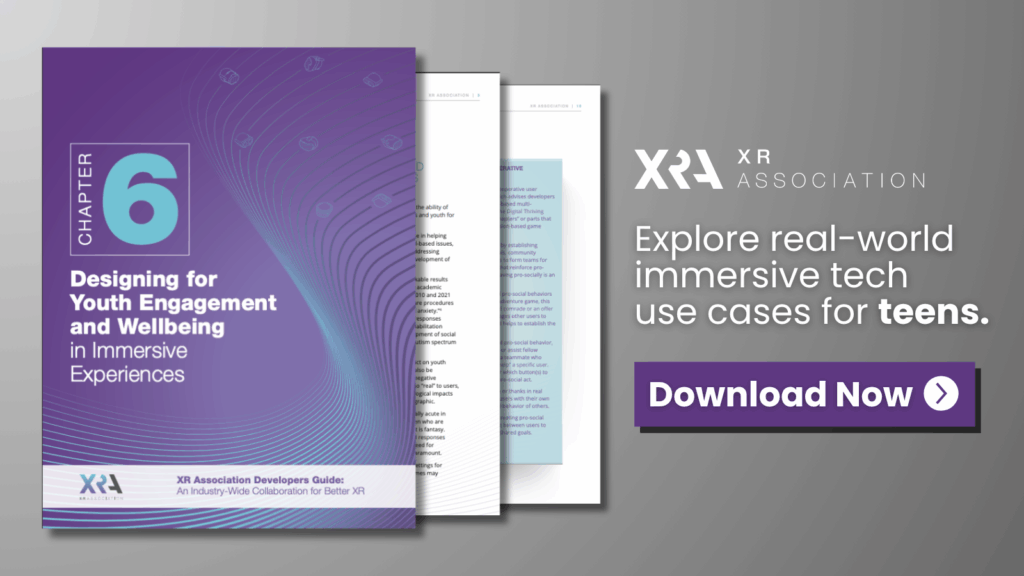 XR ASSOCIATION RELEASES LATEST CHAPTER IN DEVELOPERS GUIDE SERIES: CHAPTER 6 DESIGNING FOR YOUTH ENGAGEMENT AND WELLBEING IN IMMERSIVE EXPERIENCES