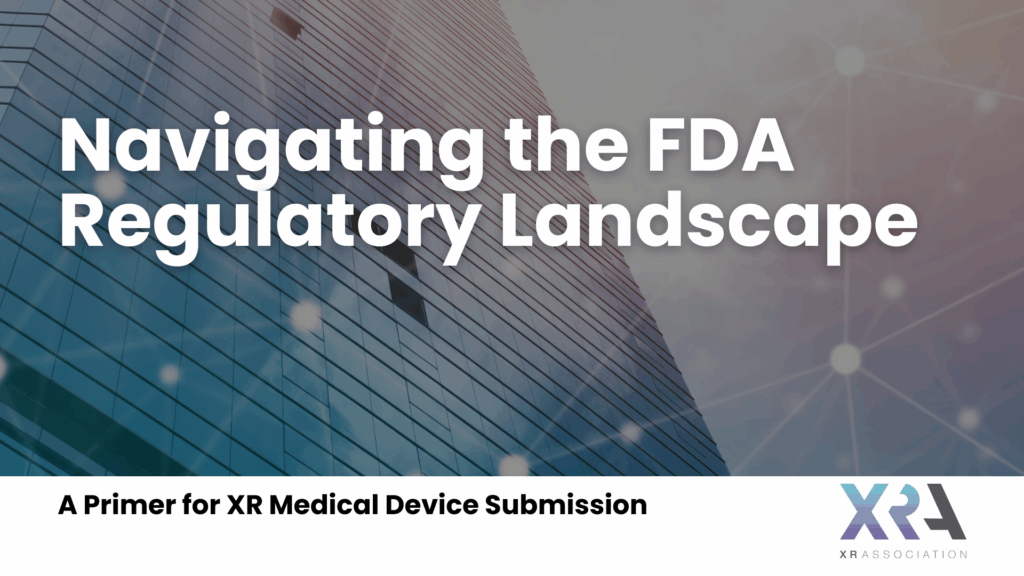 Washington, D.C. – Today, the XR Association published, “Navigating the FDA Regulatory Landscape: A Primer for XR Medical Device Submission,” a new resource for members and other companies seeking medical device approval through the U.S. Food and Drug Administration (FDA) clearance process. Immersive technology has been proven to drive improved patient outcomes, procedural efficiency, enhanced diagnosis […]
