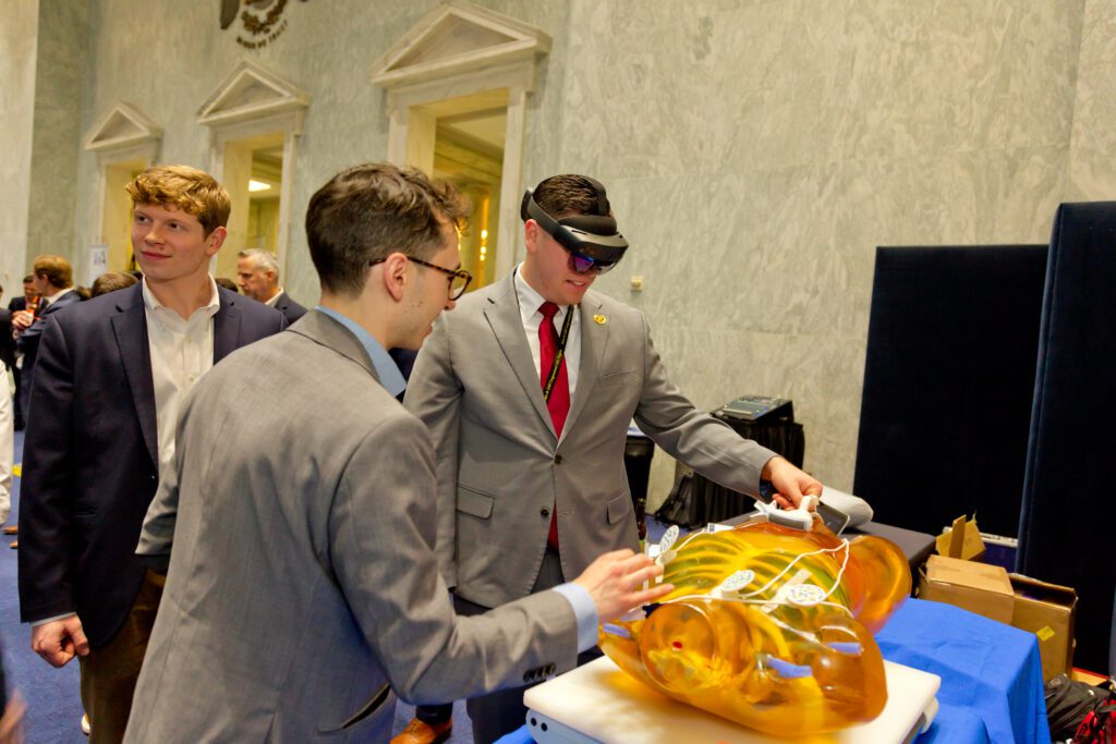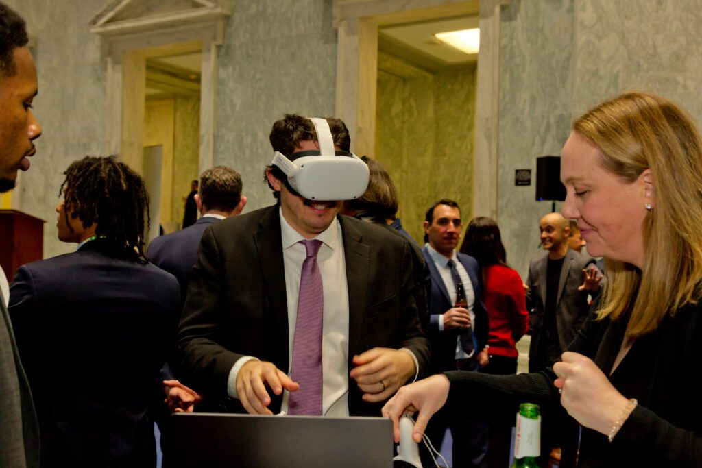 XRA’s fourth annual Demo on the Hill event convened staff and policymakers on Capitol Hill, academic experts, and industry leaders to explore how the convergence of artificial intelligence and extended reality (XR) is strengthening workforce readiness, advancing defense modernization, and reinforcing American competitiveness. The event gave Members of Congress and their staff hands-on access to cutting-edge immersive technologies deployed across workforce training, healthcare simulation, enterprise operations, and entertainment. Featured demonstrations included experiences from Meta, HTC Vive, Transfr, Select Reality, CareerViewXR, Qualcomm, MediView, Big Rock Creative, Mynd Immersive, and RP1.